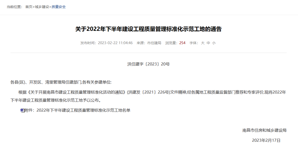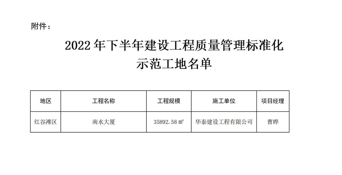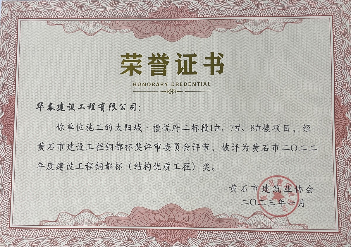 近日,在南昌市住房和城乡建设局发布的《关于2022年下半年建设工程质量管理标准化示范工地的通告》、黄石市建筑业协会发布的《关于授予2022年度黄石市建设结构优质工程奖项目的通知》中,经各属地工程质量监督部门推荐和专家评价,由易游官网登录入口_易游(中国),承建的“南水大厦”项目与“太阳城·檀悦府二标段1#、7#、8#楼”项目分别荣获南昌市“2022年下半年建设工程质量管理标准化示范工地”、“黄石市2022年度建设工程铜都杯(结构优质工程)奖”。建设工程质量标准化示范工地评比是考核参建单位质量管理水平的重要标准之一,同时,建设工程铜都杯(结构优质工程奖)代表了建筑工程结构施工质量的高水平,也是精品工程的重要标志。获此两项殊荣,是对华泰建设项目施工水平及安全质量管理的充分肯定,彰显了华泰建设在工程项目管理、工程品质等领域的卓越实力。